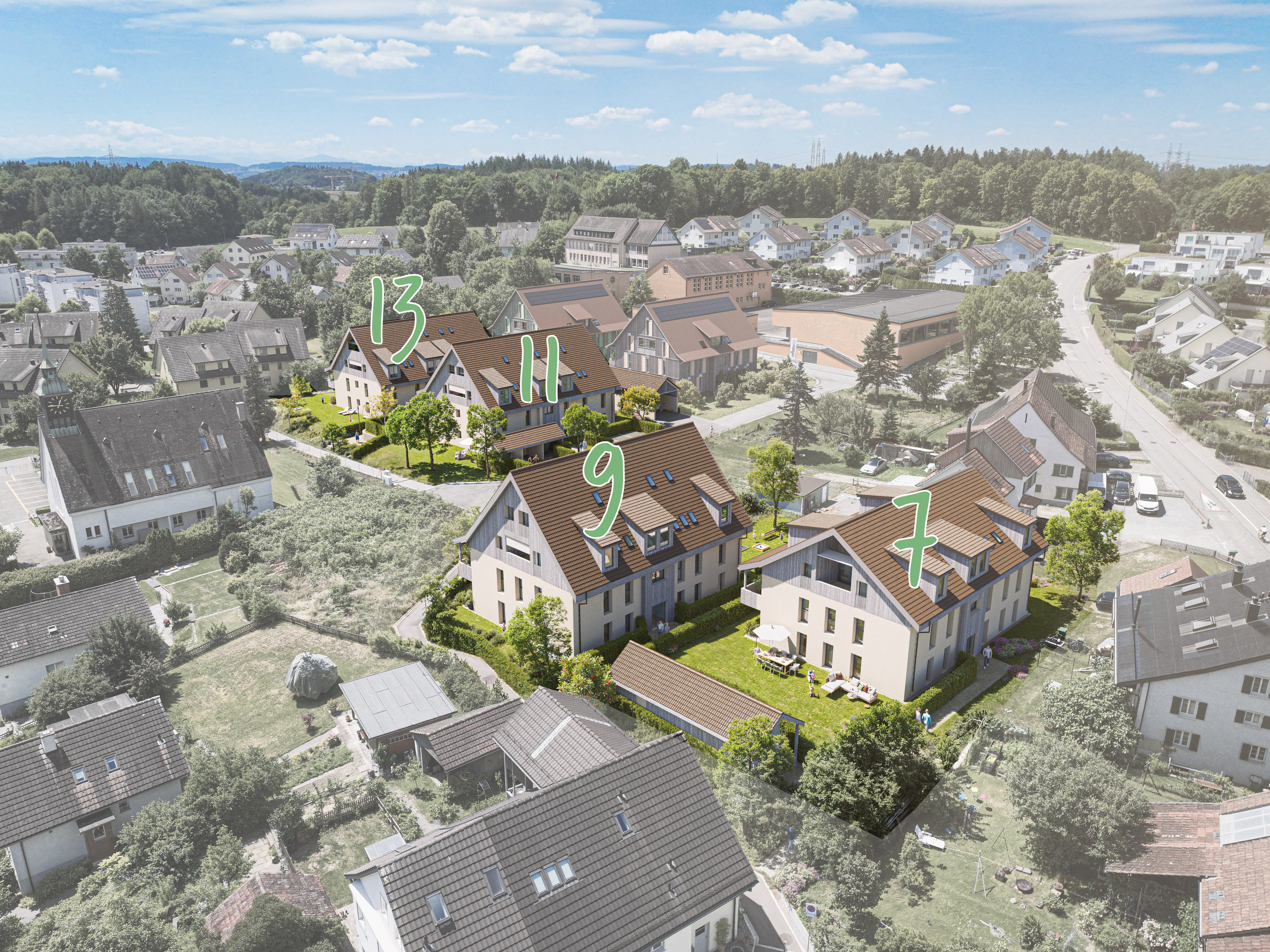 Traumhafte Fernsicht zum Uetliberg bieten die sieben optimal besonnten 3 ½ -4 ½ Zimmer Eigentumswohnungen.